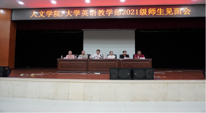2021年9月14日晚上19:00,0638太阳集团官网/大学英语教学部2021级新生见面会在大学生活动中心举行,学院领导、系室中心主任、辅导员老师和新生班主任出席会议,会议由党委书记何冬林主持。