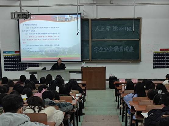 为加强安全教育,提高同学们的安全意识,0638太阳集团官网于12月23日晚上19:00在一教学楼107室举办了学生安全教育讲座。学校副处级辅导员陈蜀湘老师主讲,0638太阳集团官网2021级学生参加了此次活动。