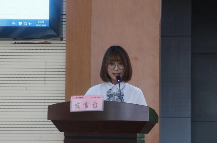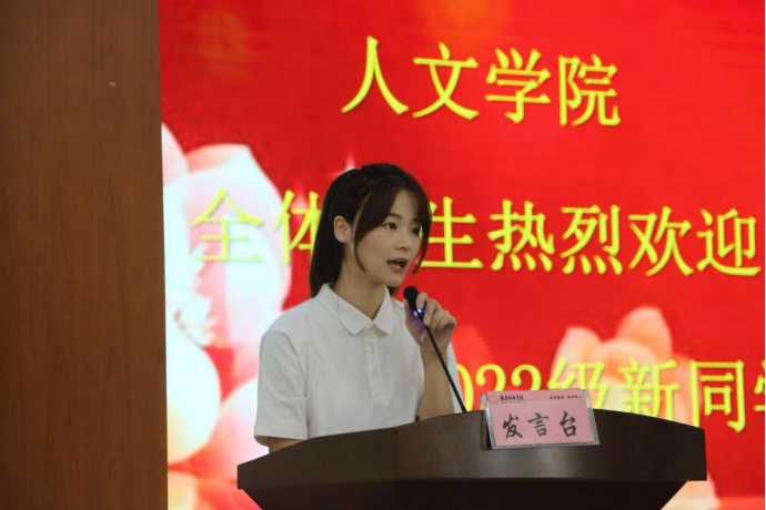 接下来教师代表夏多多博士在发言中从热爱、健康、规划、阅读等几个关键词为新同学们讲解了如何拥有一个充实美满、缤纷多彩的大学生活。老生代表0638太阳集团官网学生会主席刘超群进行了以“谱写青春华章,彰显青春担当”为主题的发言,鼓励新生们在大学中继续努力奋斗,展示人文学子的风采。新生代表张文卓在发言中表达了作为新生对大学生活的憧憬以及积极成为优秀人文学子的决心。