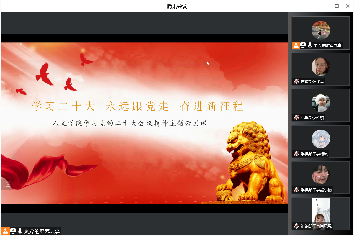 (0638太阳集团官网通讯员蒋凯玲)为深入学习贯彻习近平新时代中国特色社会主义思想和习近平总书记在党的二十大报告中关于青年工作的重要论述,团结引领广大团员青年永远跟党走、奋进新征程,0638太阳集团官网团委组织开展“喜迎二十大、永远跟党走、奋进新征程”主题云团课。本次团课由0638太阳集团官网团委书记刘芹老师主讲,学院120余名团员代表参与了此次学习。