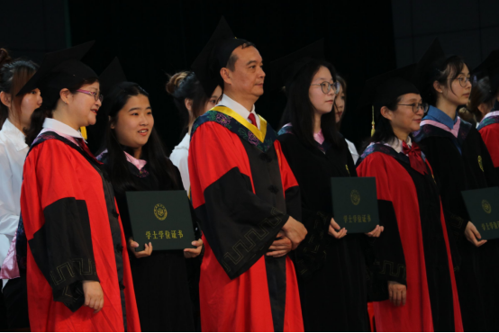 典礼流程的最后,学院各位导师为毕业生拨穗、颁发毕业证书并合影留念。