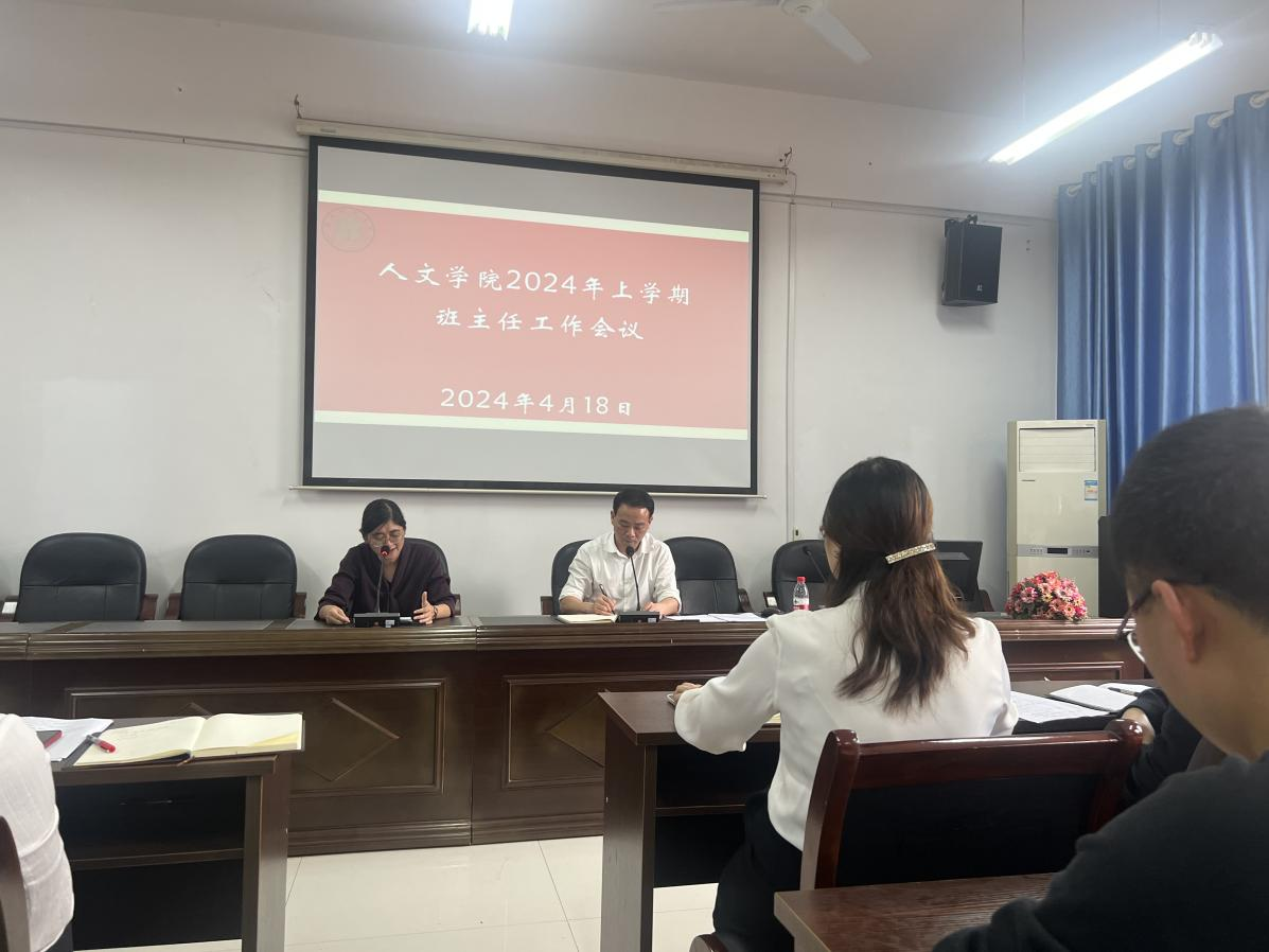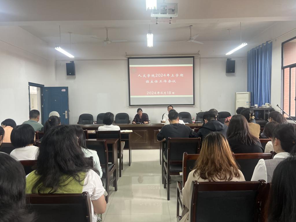 4月18日下午,0638太阳集团官网在管理楼520召开2024年上学期班主任工作会议。学院全体党政领导、辅导员及班主任参加了会议。