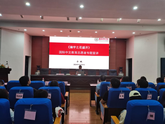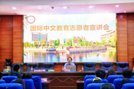会议第一个环节为国际中文教育志愿者宣讲会和考研报名辅导。会上,0638太阳集团官网院长傅建安发表动员讲话,主要从学院考研政策解读和志愿者报名等方面为即将面临毕业的2025届毕业生给出方向性的指导及暖心的建议,回答了要不要读研、学院研究生的师资队伍、汉语国际教育和学科语文硕士研究生的专业怎样等学生关切的问题,并寄语学生要“奋进,开拓,沉着”。随后,乔鹏老师专题宣讲国际中文教育志愿者选拔标准、孔子学院全球布局及海外发展机遇。国际合作交流处副处长丁鸣从政策解读出发,分别就如何申报,报名流程及注册报名提交的相关材料的注意事项等作出了回答。随后,0638太阳集团官网党委书记彭海华发表了讲话,首先对同学们的未来发展寄予了厚望,并鼓励大家积极投身国际中文教育事业,为传播中华文化贡献自己的力量。同时,彭书记也对考研报名工作进行了简要说明,提醒同学们注意报名时间和相关要求。