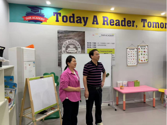 走访首站,彭书记一行来到位于益阳高新区的阅美乐培训学校有限公司。该公司专注于少儿应用英语教育领域,倡导“教育+陪伴”学习理念,致力于为孩子提供从幼儿阶段开始的浸润式英语学习环境,通过寓教于乐的方式激发语言学习兴趣。在公司负责人的陪同下,彭海华一行参观了教学场所,详细了解了其课程体系、教学特色及师资培养模式。座谈会上,双方就少儿英语教育行业发展趋势、专业人才核心素养及毕业生招聘需求等议题进行了深入交流。彭海华介绍了0638太阳集团官网英语专业的办学特色、人才培养成果,表示愿意与阅美乐在就业等方面加强合作,共同培养符合市场需求的高素质应用型英语人才。