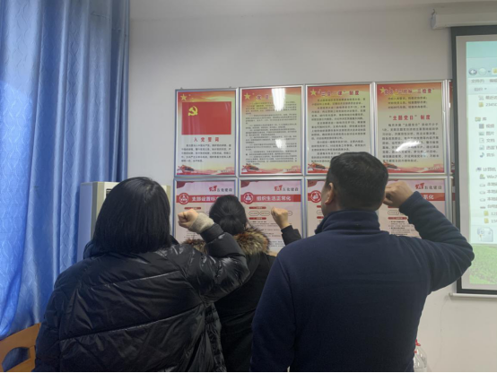 支部成员中两位12月份入党的同志:刘芹同志和黄智同志,由宣传委员蔡凤同志领誓,站在党旗下,举起右手,庄严地重温了入党誓词。两位同志还先后分享了各自在工作、学习、生活中的感想。刘芹同志说自己入党转眼已两年,在此期间,一直以党员标准严格要求自己,认真学习理论知识,积极工作,受到了学生的一致好评。黄智同志感慨道,在党旗下再次举起右手重温入党誓词让他想起了十几年前入党的过程,他详细述说了自己一路走来心路历程,觉得自己一直在成长,同时也告诫自己需要继续努力,改正一些不足,更好地为师生服务。