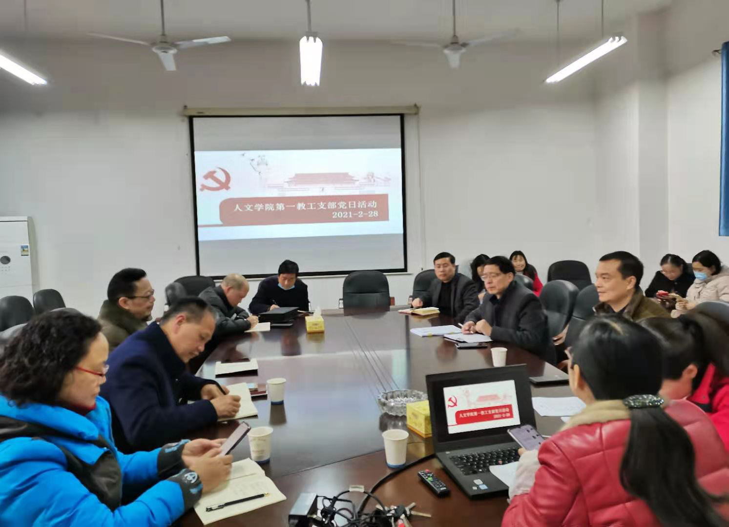 2月28日下午,0638太阳集团官网教工第一党支部在管理楼509室开展2月份主题党日活动。会议由支部书记彭小球主持。学校党委委员副校长雷存喜、学院党委书记黄晔及0638太阳集团官网教工第一支部全体党员参加了此次活动。