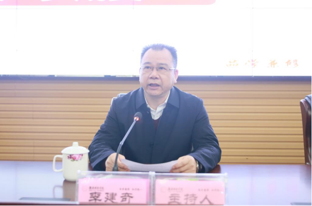 2021年4月2日上午,党委书记罗成翼在学校图书馆报告厅讲授了党史学习教育“学史明理”专题党课。全体校领导,副处以上干部、学生辅导员、党支部书记、机关副科以上干部到场听取党课。党课由党委副书记、校长李建奇主持。