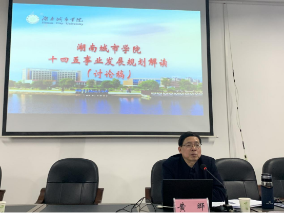 黄晔就学校“十四五”事业发展规划(讨论稿)进行了宣讲。他指出,经验告诉我们,一个国家、一个地区、一个单位,要想事业发展顺利,达成预期目标,做好规划极端重要,学校“十三五”期间取得的巨大进步就是做好的证明。他首先引导大家一起简要回顾了学校“十三五”期间的辉煌成就。增强自豪感;然后紧扣国家“三高一新”论断、湖南省“三高四新”战略和高等教育改革发展的新要求带来的新机遇,分析了新时期对学科发展的新需求,并据此寻求学校和学院“十四五”规划学科发展的新路径,增强紧迫感。他还具体解读了学校“十四五”规划的指导思想、发展目标、发展任务等内容。号召全院老师认真学习上级相关文件,全面了解和掌握高等教育改革发展的新形势,积极参与学校“十四五”事业发展规划大讨论,积极参与学院“十四五”规划的制定和完善工作,解放思想、挖掘潜力、对标对表、争做贡献。另外,黄晔还就开展好党史学习教育活动,以优异成绩献礼建党一百周年提了要求。(汤诚撰稿 黄晔审稿)