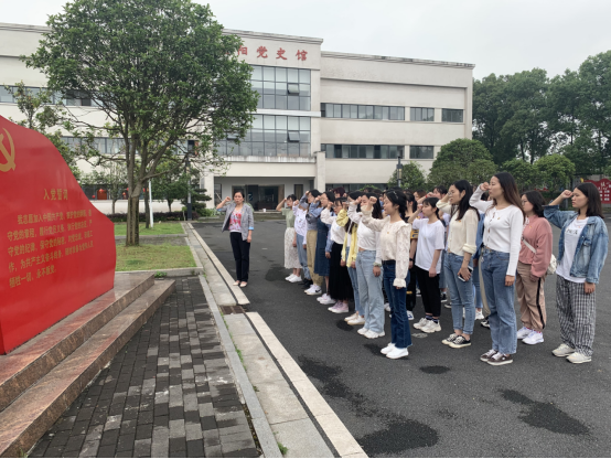 参观完陈列馆,由学院党委组织员兼0638太阳集团官网第一学生党支部书记上官赛君领誓,全体党员一起在党旗下庄严宣誓,重温入党誓词,感受先辈英雄事迹。在金家堤村党支部陈列馆,部分党员还以金家堤农村党支部这一益阳境内的代表性革命场景为背景录制了快闪视频,用青春的方式传讲红色故事,增强青年大学生永远跟党走的理想信念。