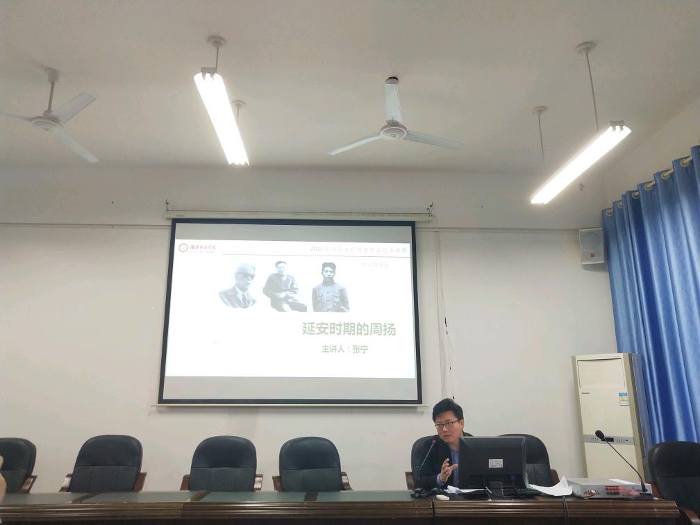 张宁博士以“延安时期的周扬”为主题,从几张照片与人物侧影引入,就“初到延安”“周扬与鲁艺”“周扬与毛泽东在延安”等三个方面对文艺理论家周扬作出多角度介绍。首先,从旧照中周扬与国家领导人、文学大家的站位中阐述其历史地位;其次,从周扬初到延安时所遭受的不同于丁玲、艾青的冷遇中说明其颇为艰难的处境;再次,从周扬对鲁艺的改造中总结其为国家文艺发展作出的贡献;最后,从周扬对《在延安文艺座谈会上的讲座》的深刻理解中分析其对毛主席敬爱崇拜的思想情感。张宁以四个新颖的角度,使周扬这位益阳历史名人“复活”在观众眼前,让观众对周扬这一名人有了更立体、更全面的认识与了解。
