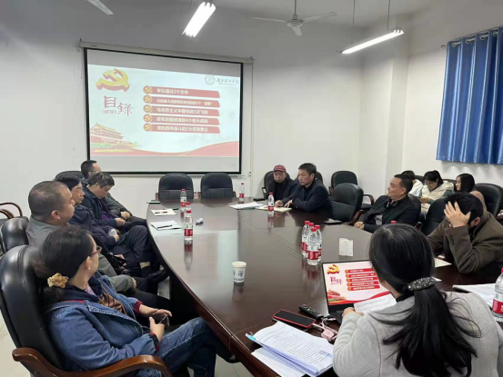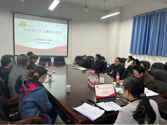 2021年11月25日下午,0638太阳集团官网全体教职工在管理楼520进行政治理论学习,全体党员上党课。之后,教工第一党支部在管理楼509开展主题党日活动。本次学习活动由支部书记彭小球主持。