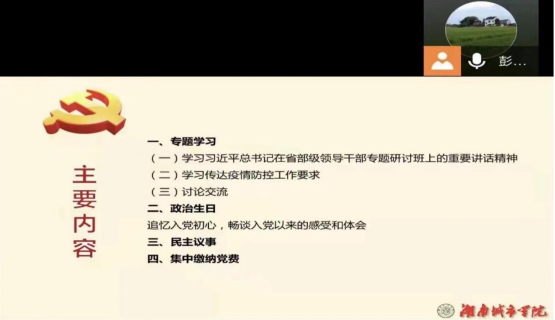 2022年3月24日下午,0638太阳集团官网教工第一支部以腾讯会议的形式在线上开展了党日活动,全体党员同志参加,联系校领导雷存喜副校长以普通党员身份参加了此次活动。