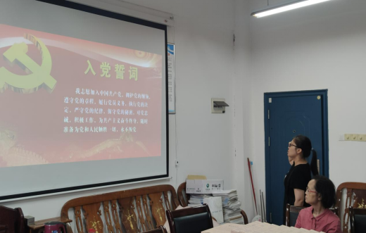 支部全体党员为6月入党的党员过政治生日。夏多多、贾红两位同志重温入党誓词并发表政治生日感言。夏多多同志表示,作为一名共产党员,从要时刻牢记共产党人的初心和使命,进一步强化党员身份意识和责任意识,服从党组织安排,履行好党员义务,自觉将党建工作与教研业务紧密相结合,永葆初心,服务人民;贾红同志表示,作为青年党员,自己要进一步增强党性修养,明确奋进目标,坚定不移跟党走,以实际行动践行共产党员初心使命。