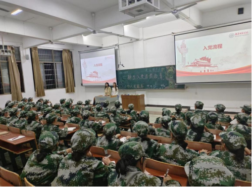 党委书记彭海华主讲入党启蒙教育和形势报告,彭海华介绍了学院党支部的基本概况,从申请入党、入党积极分子确定和培养教育、发展对象的确定和考察、预备党员的接收、预备党员的教育考察和转正五个阶段向同学们介绍了发展党员的具体流程,增强新生对党的认识和向往,增加入党启蒙教育的吸引力和感染力。