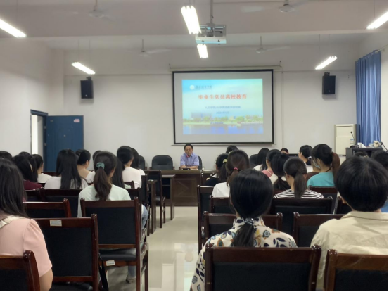 随后,刘淑莉以“严守廉洁纪律,弘扬正气清风”为题讲授了主题党课。要求毕业生党员要时刻以党员标准严格要求自己,做到公私分明、清正廉洁。同时,鼓励毕业生党员要积极投身社会实践,将所学知识和技能服务于社会,为国家的繁荣富强贡献自己的力量。最后对组织关系和档案转接的相关工作进行了培训。
