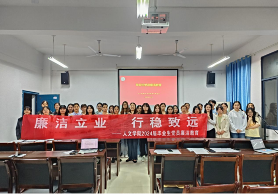 会议伊始,彭海华带领全体毕业生党员共同重温入党誓词。在庄严肃穆的氛围中,党员们再次回顾了入党时的初心和使命,更加明确了自己“为什么要入党”。随后,彭海华强调廉洁自律对于党员的重要性,并结合实际案例,深入剖析了违纪违法行为的严重危害,提醒毕业生党员要时刻保持清醒头脑,廉洁从政从业,自觉抵制各种诱惑,接着,毕业生党员们纷纷在廉洁教育的横幅上郑重签名,坚定了自己恪守廉洁纪律、弘扬正气清风的决心。