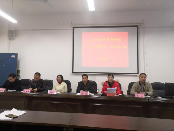 12月24日下午,0638太阳集团官网/大学英语教学部2020年教职工、工会会员大会在管理楼520会议室隆重召开。94位教职工、工会会员出席大会,会议由大学英语教学部主任周瑞英主持。
