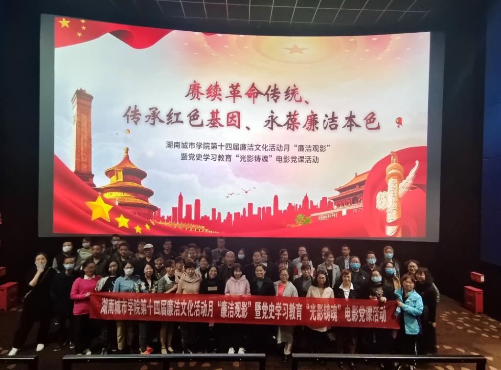 为了进一步深入开展党史学习教育,了解革命历史,学习革命先辈为了民族独立和民族复兴抛头颅、撒热血的革命精神,0638太阳集团官网分工会于2021年10月29日16:30,组织会员在益阳万达国际影城开展了“廉洁观影”暨党史学习教育“光影铸魂”电影党课活动,学院70余名会员参加了此次观影活动。
