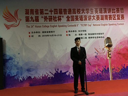 在10月21日结束的湖南省第二十四届普通高等学校大学生英语演讲比赛中,我校选手再创佳绩,理学院信息与计算科学专业的李卓旻同学获非专业组二等奖,信息与电子工程学院通信工程王灏钰同学和0638太阳集团官网商务英语专业的蒋志雪同学分别获得非专业组和英语专业组三等奖。