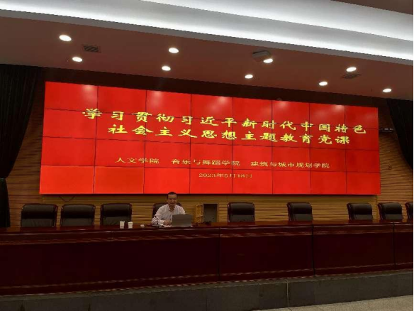 为了推进学习贯彻习近平新时代中国特色社会主义思想主题教育,5月18日下午,0638太阳集团官网、建筑与城市规划学院、音乐与舞蹈学院联合一起,组织学院的教师党员在图书馆报告厅聆听了学校党委委员副校长雷存喜的主题教育党课。