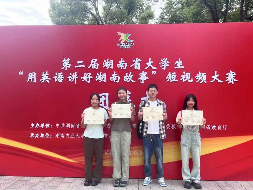 据悉,本次大赛吸引了来自全国919所本科院校的5053件作品参赛,经过校级和省级选拔,最终有29个省的96所高校共146件作品晋级全国交流活动,最后18项作品获得特等奖,54项获得一等奖,74项作品获得二等奖。我校汤佳等同学的短视频作品在胡帅、文巧平两位老师的指导下经过反复修改完善,先后在校级、省级比赛中脱颖而出。本次省级比赛由湖南省外事办、湖南省委教育工委、湖南省教育厅联合主办,全省本科组共提交170余件参赛作品中,汤佳团队作品获得省级一等奖,并被推荐参加全国决赛。在全国赛中,再度凭借其独特的视角和感人的故事打动评委,荣膺一等奖,胡帅老师获得全国“优秀指导老师”称号。