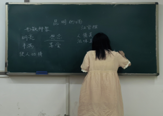 比赛历时两天,分为中学语文和小学语文两个组别进行。9月13日进行的是教案设计、课件制作与粉笔字板书技能环节,由贾红、闻滨、木克然木、徐雅琴等老师担任评审。