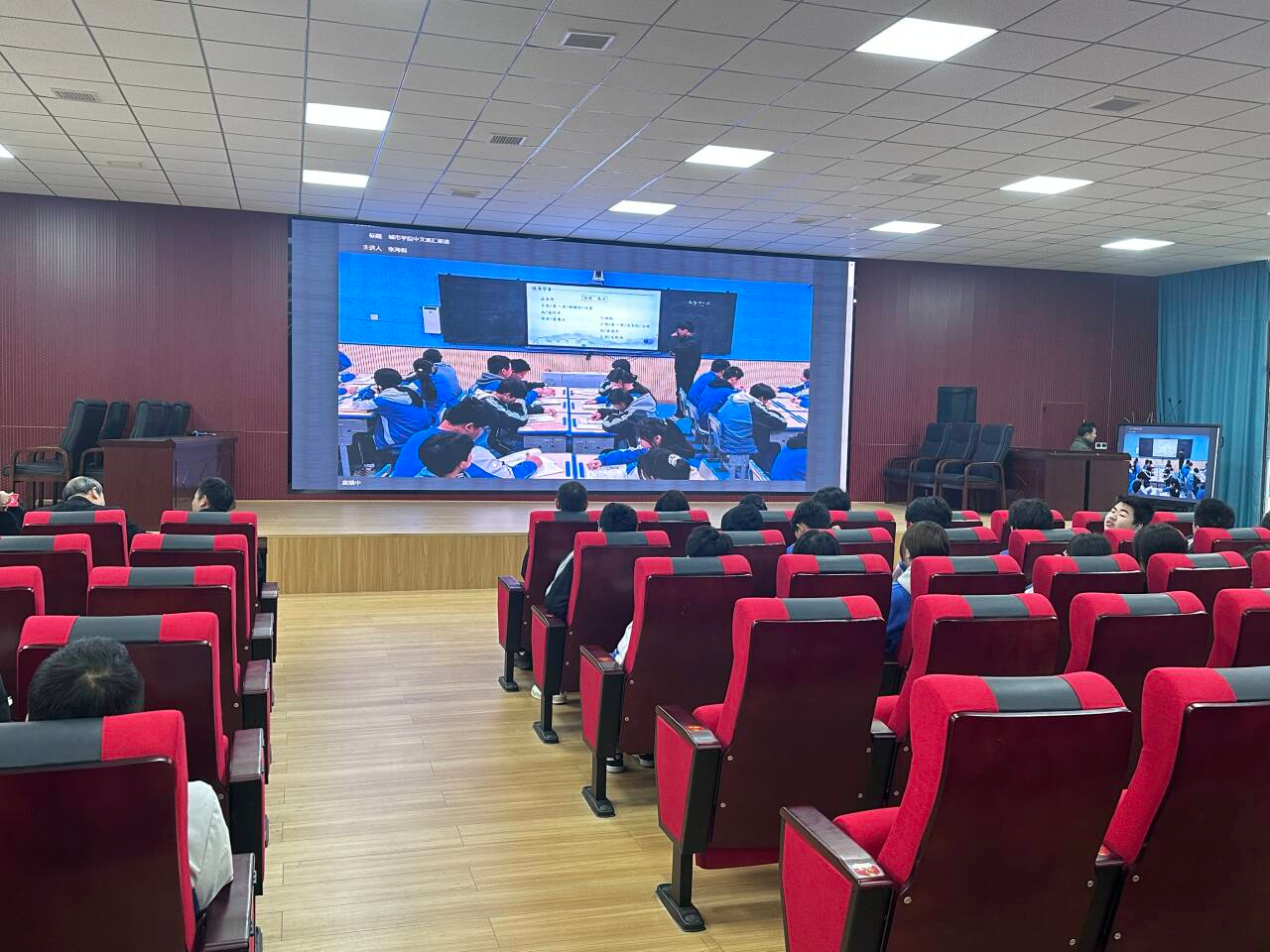 活动第一环节是实习汇报课展示。三位实习生代表依次登台,呈现了精心准备的课堂教学。张海桐同学执教九年级课文《乡愁》,他以诗意的语言引导学生层层深入体会诗歌中的情感意蕴,展现了出色的文本解读和情感共鸣能力;袁应同学面向七年级学生教授《我的白鸽》,课堂氛围充满温情和想象力,并通过情境创设与互动探究激发了学生对生命与自由的思考;刘双同学则带来了八年级的《愚公移山》,融合小组合作与辩证讨论,生动解读了经典寓言的当代价值。三堂课准备充分、各具特色。