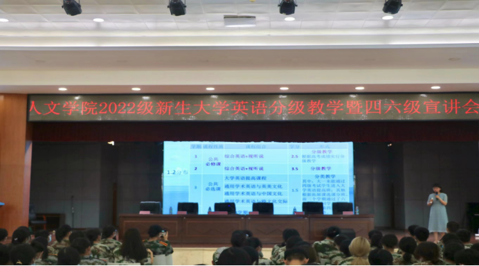 宣讲活动是大学英语教学部按照教育部《大学英语课程教学要求》提出的分类指导、因材施教原则,为适应个性化教学实际需要、提升我校大学英语教学质量、提高学生大学英语四、六级通过率而举办的。宣讲活动得到了相关职能部门、各二级学院的大力支持。这次宣讲活动对2022级新生明确学习目标尽早认识大学英语学习以及四六级考试的重要性有着十分重要的意义。(刘萍萍撰稿)
