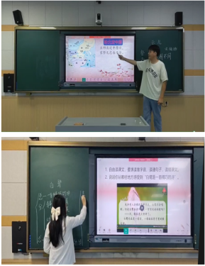 本次教学技能大赛分小学教育组-语文和中学教育组-语文两组展开,参赛学生按抽签顺序逐一进行8-10分钟的模拟课堂展示,评委老师从教学设计(课件制作)、模拟授课和板书等方面进行打分并评定最终成绩。