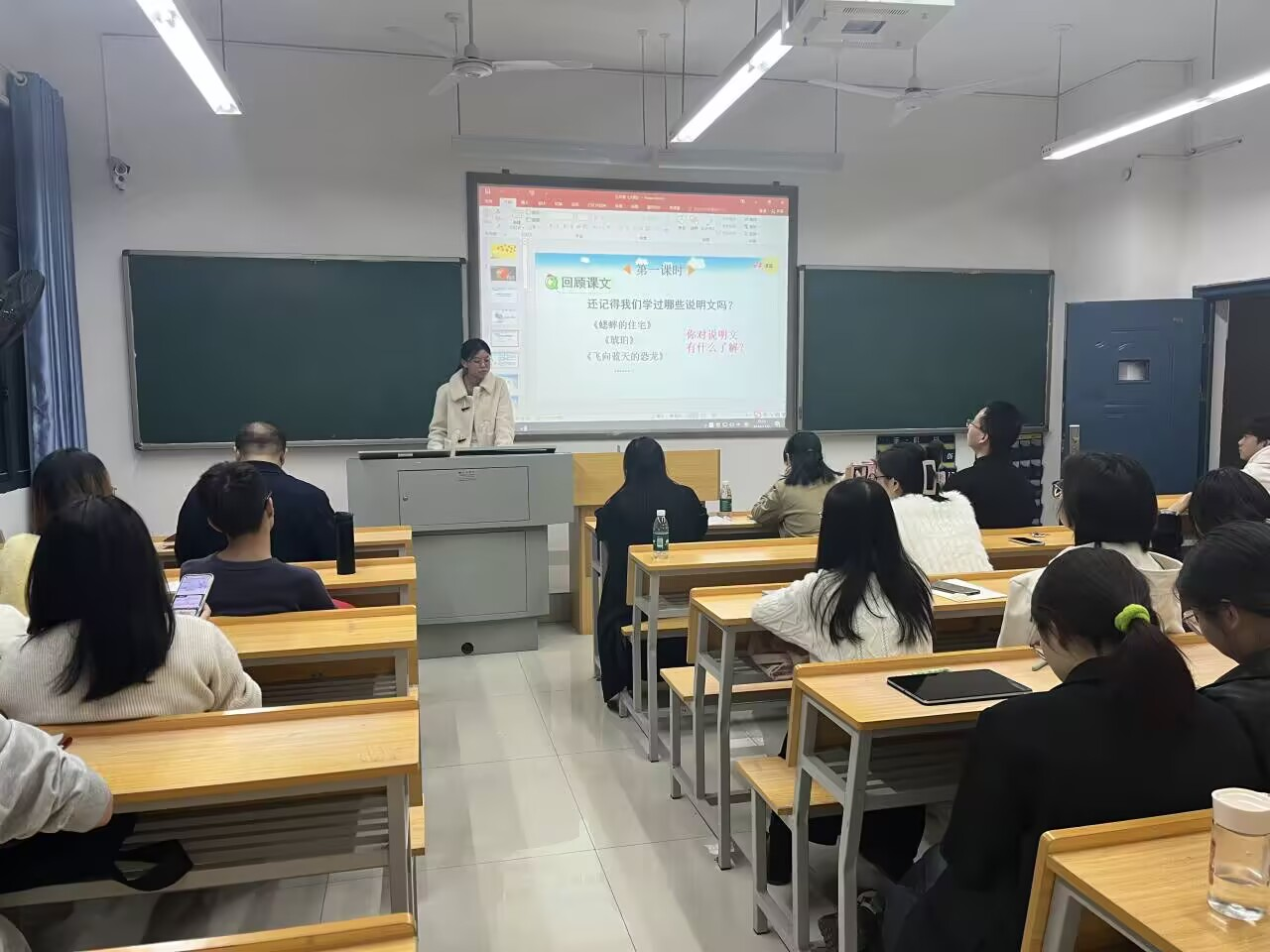 接着,四位实习生进行授课汇报。2105502班李朝以七年级语文《行军九日思长安故园》和《夜上受降城闻笛》、2105502班康建新以七年级语文课外古诗《秋词(其一)》、2105501班何伶俐以五年级语文《太阳》、2105501班廖珂荧以四年级语文《精卫填海》为内容,分别展示了4个精彩的教学片段。