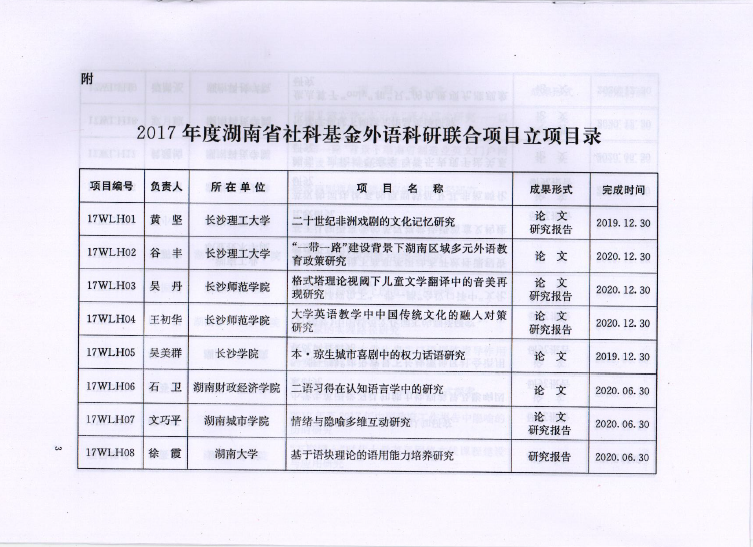 关于下达2017年度湖南省社科基金外语科研联合项目的通知(文巧平)