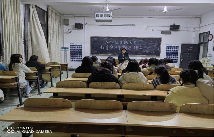会上实习小组组长屈怡、王璐璐、陈怡晗从实习情况、实际成效、工作困惑以及感知心得等方面作了详细的总结。
