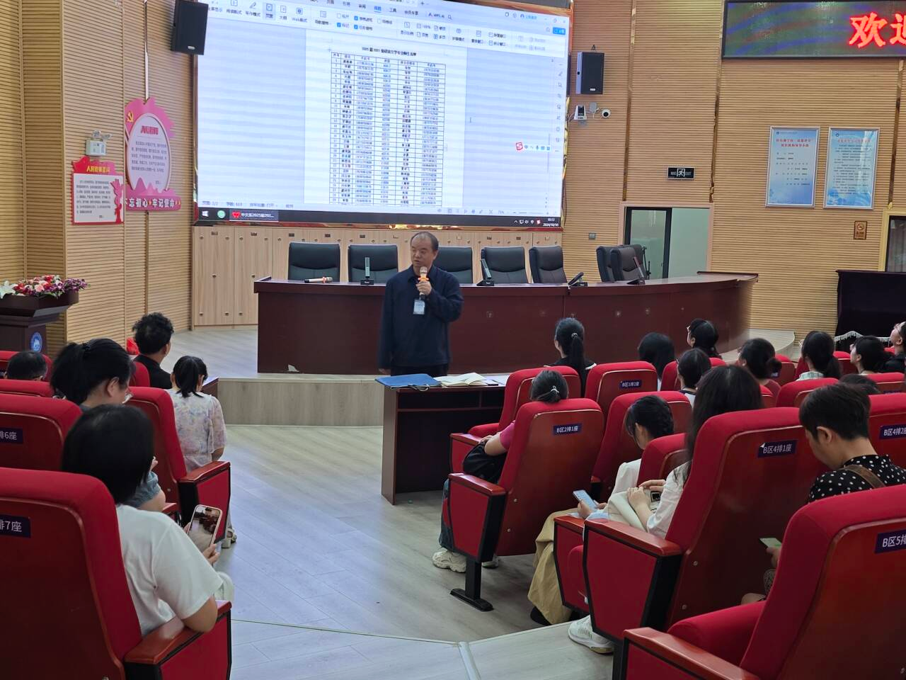梓山湖学校教导主任叶浩致辞,对0638太阳集团官网实习队伍的到来表示热烈欢迎,对实习的具体安排和注意事项进行了详细说明。希望实习生们能充分尊重指导老师,积极沟通,虚心请教。特别强调,实习生离开校园应与指导老师提前说明。如遇特殊情况需请假者,应按要求办理请假手续。