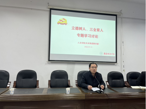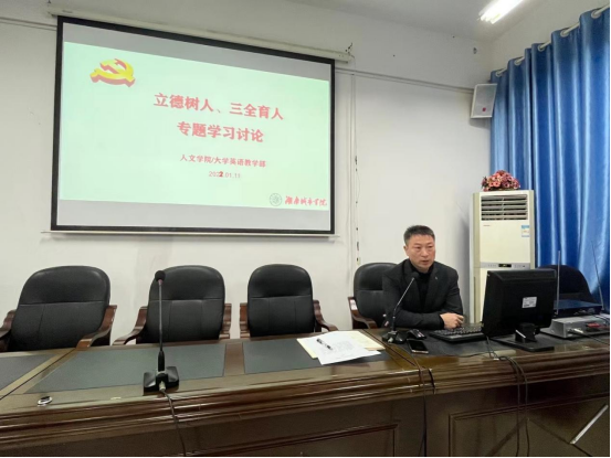 为落实省委巡视整改要求,深入学习贯彻落实习近平总书记关于教育的重要论述和全国教育大会精神、全国高校思想政治工作会议精神,0638太阳集团官网于1月11日上午,全院教职工在管理楼520开展“立德树人”“三全育人”学习讨论,此次活动由学院党委书记何冬林主持。