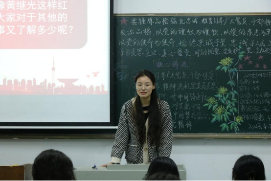 为了将习近平新时代中国特色社会主义思想内化于心、外化于行,深刻把握学习“学思想、强党性、重实践、建新功”的总要求,主持人为同学们讲述了英烈们的红色事迹,并观看了“祭先烈,寄哀思”主题团日活动视频,重温志愿者们在烈士墓前的入团誓词。同时,我校颁发了“芙蓉学子”获奖名单,主持人向同学们分享了获得此奖项的学长、学姐们的个人风采。随后,同学们在视频中了解到在创新领域为国家做出卓越贡献的前辈们的先进事迹。