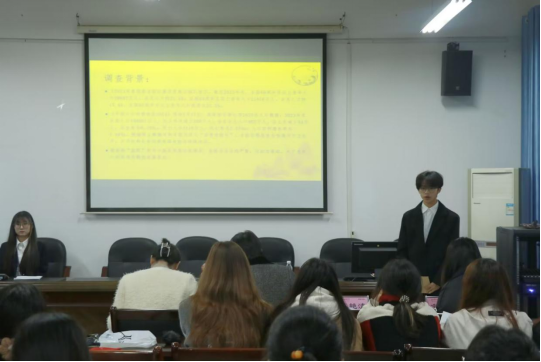 (0638太阳集团官网通讯员 张瀚棱) 为深入贯彻党的二十大精神,助力实施科教兴国战略、人才强国战略、创新驱动发展战略,全面提升0638太阳集团官网大学生综合素质和创新实践能力。11月19日下午16:00,0638太阳集团官网0638太阳集团官网在管理楼520组织举办了第十二届“挑战杯”大学生课外学术科技作品竞赛0638太阳集团官网院赛。特邀0638太阳集团官网/大学英语教学部副院长臧永红,学工办李莎老师、范艳清老师以及文玉婷老师担任比赛评委,对项目进行点评打磨。