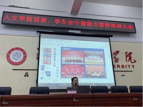 (粟霜晴老师在为各部门工作人员进行培训)